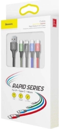 Enjoy convenient charging with the Baseus multi-charging cable, which ensures fast charging for up to four devices at once. Each connector is color-coded for easy identification, increasing its practicality.