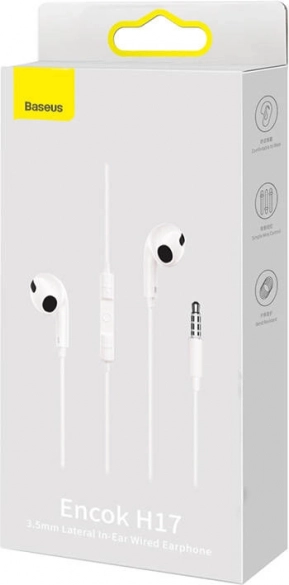 The BASEUS Encok H17 are lightweight and comfortable wired earphones with a Half-In-Ear design that sit pleasantly in the ear, even during longer wear. Large 14 mm drivers with a polymer diaphragm deliver detailed stereo sound with pronounced bass and balanced mids and highs. Thanks to the universal 3.5 mm connector, you can easily connect them to a phone, laptop, game controller, or computer.