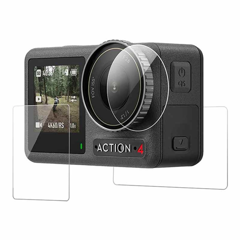 Keep your camera’s screens and lens in perfect condition. The TELESIN film set is designed specifically for the DJI Osmo Action 4/3 and offers high resistance to scratches, smudges, and fingerprints. Thanks to the precise cutouts and perfect adhesion, dust won’t get under the film and no air bubbles remain.