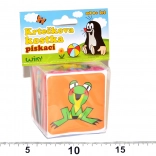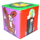 A fun squeaky cube for the littlest ones from the collection featuring THE LITTLE MOLE and friends, delighting with bright colors and a soft, safe material. Each side has a different color and shows favorite characters; when pressed, the cube makes a squeaky sound that supports babies’ sensory perception and attention.