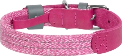 The WAU DOG Classic collar in pink is an ideal choice for everyday walks and active dogs. The blend of genuine leather and recycled cotton ensures skin comfort, long service life, and an attractive look. The metal buckle and rings are corrosion-resistant, keeping the collar beautiful and functional even with frequent use.