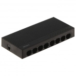 The device is unmanaged, so it works immediately after connecting (Plug & Play) and requires no drivers. It offers 1.6 Gb/s switching capacity, 768 Kb buffer, support for 2K jumbo frames, and a 2K MAC table. Surge protection up to 2 kV (common mode) and 1 kV (differential) increases resilience in more demanding environments.