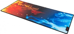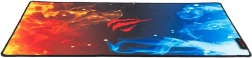 The pad stands out with a striking design featuring red and blue flames that add style to your gaming setup.