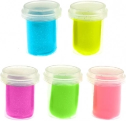 Sparkling modeling clay for children aged 3+ brings hours of creativity and fun. The set includes 5 cups with glitter colors (pink, yellow, blue, green, purple) that you can mix to create new shades. Practical cups keep the dough soft and pliable for future creations.