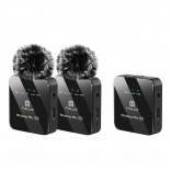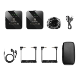 The set is ideal for vloggers, content creators, and journalists, and includes a bundle of components featuring a receiver, two transmitters, audio cables, monitoring earphones, windshields, and a storage bag.