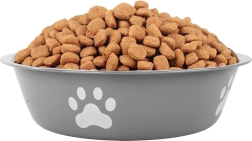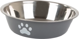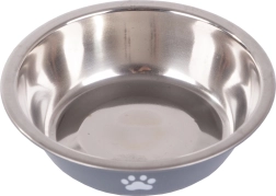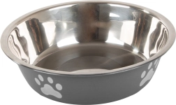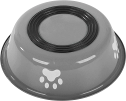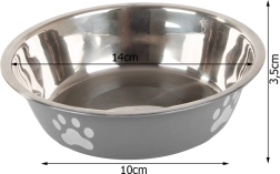 Enhance your pet's feeding experience with this sturdy metal bowl. It is suitable for both dry and wet food, and its non-slip rubber prevents sliding on the floor. The practical design with paw motifs adds aesthetic value to any interior.