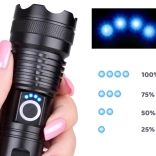Powerful LED flashlight made of aircraft-grade aluminum offers high light output, water resistance, and 5 lighting modes for any situation. Thanks to USB‑C charging, a ZOOM function, and the option to power it with an 18650 battery or 3× AAA, it’s ideal for trips, camping, and workshop use. Comfortable one-button control, a charge status indicator, and practical accessories including a case ensure reliable use at home and in the field.