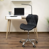 This modern office chair fits perfectly in a kid's room, studio, office, or reception. The durable eco-leather upholstery with subtle stitching looks elegant, is easy to clean, and retains its appearance over time. The five-star chrome base with rubberized casters provides stability and gentle, quiet movement across the floor.