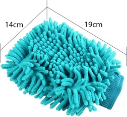 Thanks to its 19 × 14 cm size, it fits comfortably on the hand, and the elastic cuff keeps the mitt securely in place. The quality polyester and polyamide blend ensures long service life, high absorbency, and easy care—you can wash the mitt by hand or in a machine.