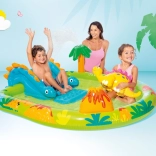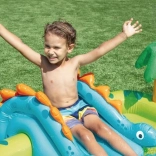 This inflatable pool with an original dinosaur design brings lots of fun to the backyard. Kids will enjoy sliding and playing with dinosaur figures, while the built-in palm sprayer adds an extra element of watery refreshment.