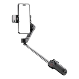 The gimbal is lightweight and easily portable thanks to its foldable design. The integrated 205mm extendable rod allows for a wider shot and remote control can be used separately or attached, where it also charges.
