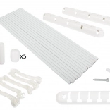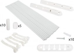 Package contents: 15 steel rods, 5 cords, 10 screws, 10 wall plugs, 5 locking balls, 10 rod connectors, 2 cord holders, 1 ball holder, original packaging.