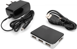active USB 2.0 hub 4-port black–silver DIGITUS
