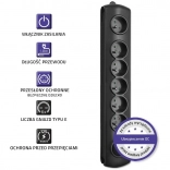 Safety is ensured by surge protection with a varistor, integrated child safety shutters in all outlets, and flame-retardant PP material. Thanks to the option to mount to furniture and a solution for winding excess cable, you will keep cabling under control and the space will look clean and tidy.