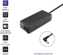 AC adapter for TOSHIBA 65 W, 19 V, 3.42 A, connector 5.5 × 2.5 mm
