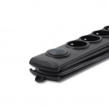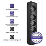 Control is maximally convenient with the illuminated Quick Switch foot switch—with one press you turn power to all connected devices on or off. Safety is ensured by surge components (varistor), child safety shutters in all outlets, and a flame-retardant PP build.