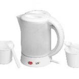 The compact LAFE travel kettle with a 0.6 l capacity is ideal for vacations and business trips. Thanks to its small size, it easily fits in a suitcase and prepares up to two cups of hot beverage. It features a concealed heating element, auto shut-off without water, overheat protection, and a power indicator light. The package includes 2 cups and 2 spoons for convenient use on the go.