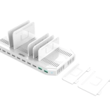 Tidy up charging for all your devices in one place. This compact charging station offers up to 10 USB ports, two of them with QC 3.0 fast charging, a total output of 96 W, smart BC 1.2 management, and adjustable dividers to neatly store phones and tablets. Ideal for home and office.