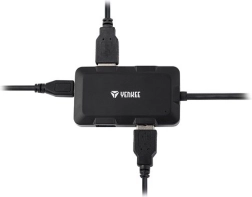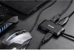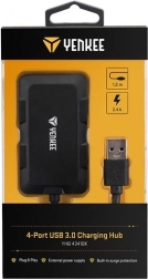 The USB hub expands your computer with 4 additional USB ports for connecting peripherals such as a mouse, keyboard, or external hard drives. It offers a maximum charging current of 2.4 A per port when using an external power source (not included).