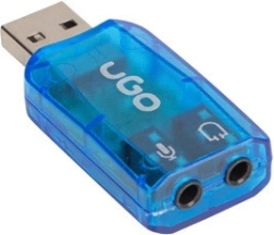 The USB Sound Card UGO 5.1 is designed for anyone looking to enhance the audio output of their computer or laptop. It allows easy connection of headphones and a microphone, thanks to two available ports.