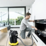 Removing ash from fireplaces, stoves, and grills can be very troublesome. Cleaning results are usually unsatisfactory because the dust floating around settles on everything nearby. Kärcher has the ideal solution for this problem – a chimney vacuum that quickly and efficiently removes cold ash. The innovative filtration technology with a separate large debris filter and a flat pleated filter ensures maximum user safety and consistently high suction power. The AD 4 Premium model can also be used as a top-class dry vacuum when combined with a floor nozzle.