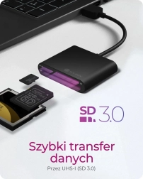 Simply connect the IB‑CR301‑U3 reader to an available USB 3.0 port and instantly access data from memory cards. The high throughput of up to 5 Gbit/s ensures significantly faster transfers compared to older standards and smooth handling of large files.