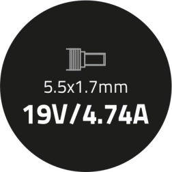 The adapter is equipped with a set of protective features that safeguard both the device and the power source: against overvoltage, overload, short circuit, and with thermal protection. With the correct parameters (19 V, 4.74 A) and the precise 5.5 × 1.7 mm connector, you get compatibility with many ACER models.
