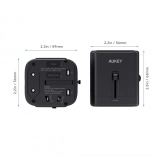 Discover the excellent Aukey universal adapter for traveling around the world. Designed to provide seamless connectivity in over 150 countries including Europe, the USA, the UK, Canada, Australia, and more. With its compact dimensions, it's easily portable, making it a great travel companion.