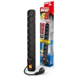 Acar S8 is an elegant extension cord with eight sockets providing surge protection. It is equipped with an illuminated switch and an automatic circuit breaker for convenient use.