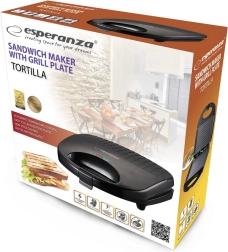 A fast, reliable sandwich maker with 1000 W power for crispy toast and tortillas in minutes. Thanks to non-stick plates, automatic temperature control, and a thermally insulated body, it is easy to use and clean. Power and preheat indicators always let you know when it is ready.