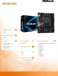 The ASRock B550M-HDV motherboard is designed for AMD processors with an AM4 socket, supports up to 2 modules of DDR4 RAM, and is equipped with an M.2 slot for fast SSD storage. It is an ideal choice for users looking to build or upgrade their computer with performance and flexibility in mind.