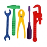 The set includes basic tools made of lightweight plastic—an ideal size for children’s hands and safe play without sharp edges.