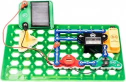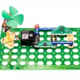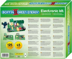 The Boffin II Green Energy kit shows in a fun way how electricity is generated from sun, water, and wind. Simply snap color-coded parts onto the sturdy base grid and quickly build working circuits – from a water wheel and hybrid motor to a solar charger and windmill.