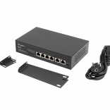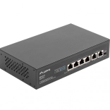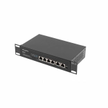 The Lanberg RSFE-4P-2FE-60 switch provides 6 ports, 4 of them supporting PoE+ for device powering, and 2 for uplink. This allows you to easily connect devices like IP cameras or VoIP phones. The total power capacity is up to 60 W, enabling the connection of multiple devices simultaneously.