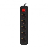 This sleek black extension strip provides five round Schuko sockets with safety shutters and a practical rocker switch for quickly turning off all connected devices. Thanks to the 3 m cable, you can easily reach less accessible outlets.