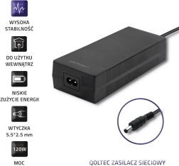 Reliable QOLTEC desktop power supply for safely powering a wide range of devices. It offers 24 V, 3 A and 72 W output with a 5.5 × 2.5 mm connector. It excels with high efficiency, low power consumption, and compact dimensions. For maximum assurance, it is equipped with overvoltage, overload, short-circuit, and overheating protection.