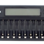 An integrated LCD display provides a clear overview of the charging status of each battery.