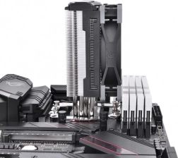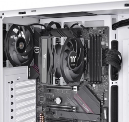 The Thermaltake TOUGHAIR 310 cooler features an asymmetric fin design that allows for better airflow and reduces turbulence. This increases the cooling efficiency and extends the lifespan of your CPU. Equipped with four U-shaped copper heatpipes with a diameter of 6 mm, it ensures efficient heat transfer from the CPU to the aluminum fins, supporting heat dissipation up to a 170 W TDP. The 120 mm high static pressure fan reaches speeds up to 2000 RPM and provides optimal cooling performance while maintaining low noise levels. With compatibility across various CPU sockets, the TOUGHAIR 310 is a universal solution for a wide range of systems.