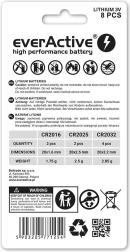 The set of everActive lithium batteries includes 4 x CR2032, 2 x CR2025 and 2 x CR2016. Ideal for wide usage in various devices.