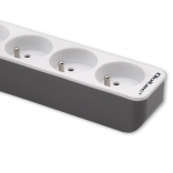 The white gray power strip with 5 sockets is an elegant solution for cable organization at home or in the office. Utilize the practical Quick Switch for easy power control and provide your devices with energy. Safety is ensured by child-proof socket covers and non-flammable material.