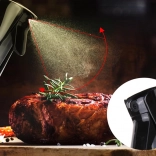 A practical 200 ml glass sprayer for oil, vinegar, and other liquid seasonings ensures even misting and precise dosing for cooking, baking, and grilling. Thanks to the pressure pump, it creates a fine mist, saves oil, and supports healthier meal preparation.