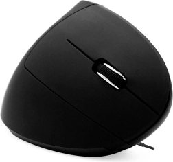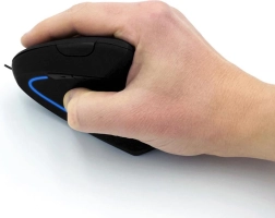 The vertical shape supports a handshake grip, reducing wrist bend and forearm twisting. Ideal for long hours at the computer.