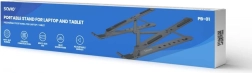 Light and compact folding stand SAVIO PB-01 for laptops and tablets with adjustable angles, prevents overheating and ensures comfortable use.