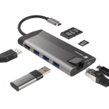 Expand your laptop with 3× USB 3.0, HDMI, RJ‑45, SD, and microSD — all via a single USB‑C. Enjoy fast transfers (up to 5 Gb/s) and instant readiness thanks to plug‑and‑play.