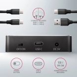 The AXAGON ADSA-M2C desktop docking station provides easy and fast connection of two NVMe (PCI-Express) M.2 SSD drives to your computer. The connection is conducted via a reversible USB-C connector, with the option to use a standard USB-C -> USB-A cable or USB-C -> USB-C, which can be found in the package.