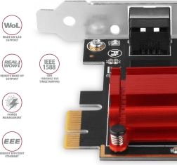 The AXAGON PCEE‑G25 adds ultra‑fast 2.5GBase‑T connectivity to your PC via a standard RJ‑45 port. Thanks to IEEE 802.3bz, you can achieve speeds up to 2.5 Gb/s even on common Cat 5e / Cat 6 cables up to 100 m. The card is ideal for upgrading home or business networks, adding an extra LAN port, or replacing a failed integrated NIC.