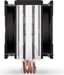 The densely finned radiator with a compact base and four copper heatpipes efficiently captures and carries heat away from the CPU even during prolonged loads.