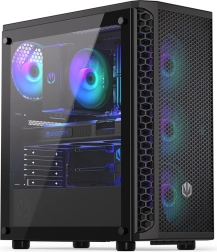The compact Endorfy Signum 300 ARGB PC case with a tempered glass side panel offers excellent airflow, striking ARGB lighting, and generous space for high-performance builds. The box includes 4 quiet Stratus 120 PWM ARGB fans and the option to install up to 8 fans in total. It supports 240/360 mm radiators, graphics cards up to 325 mm, and up to 4× 2.5" or 2× 2.5" + 2× 3.5" storage.