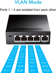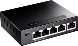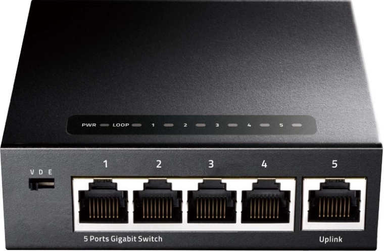 Get the high-performance GS105 5-port gigabit switch for efficient network management. This compact and sturdy device ensures reliable connections thanks to its intelligent switching between speeds of 10 Mbps, 100 Mbps, and 1000 Mbps.