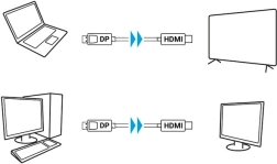 Designed to connect a computer with DisplayPort to a monitor or TV with HDMI. Not compatible in the reverse direction (HDMI → DP).
